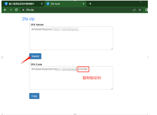 第三步:打开网站:2fa.vip 输入密钥(就是大写字母和数字混合的一串东西)